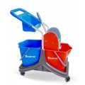 Conjunto de dois baldes com capacidade para 25L cada,com cavalete e espremedor para limpeza de pisos frios em geral.