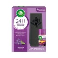 Freshmatic Spray Automático possui Tecnologia Odor Zero, que elimina os maus odores através da fixação das moléculas de sua fórmula nas moléculas de mau odor, neutralizando elas e perfumando o ambiente por 24 horas.